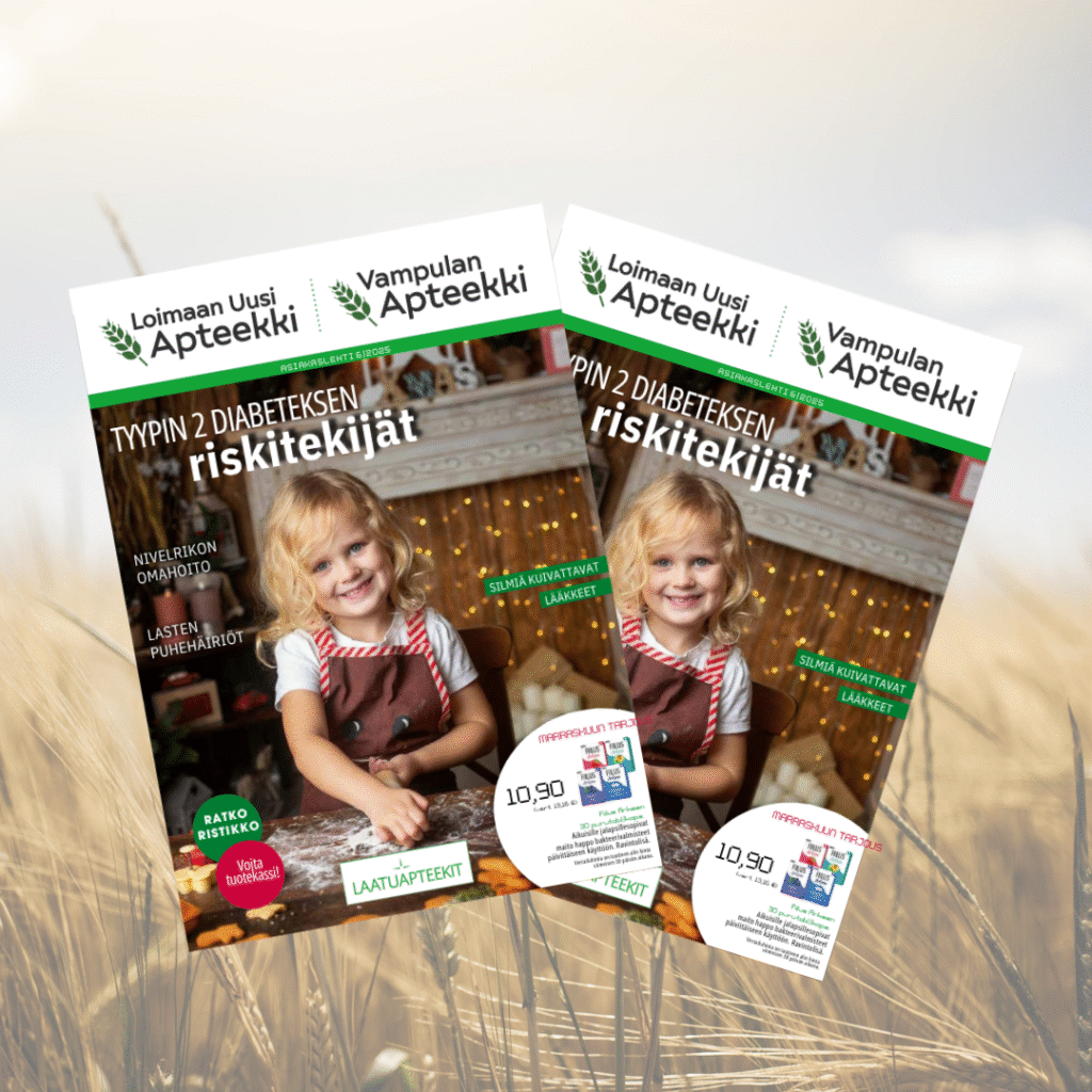 Kuusi kertaa vuodessa ilmestyvä 36-sivuinen Laatuapteekkien asiakaslehtemme kertoo ja muistuttaa ajankohtaisista terveysasioista ja auttaa pitämään omasta terveydestä huolta sekä auttaa lähimmäisten terveydestä huolehtimisessa.